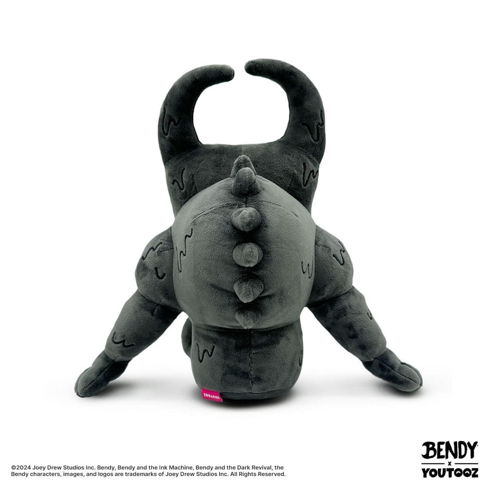 Beast Bendy isn’t all that scary, actually he’s much cuddlier than you’d think and now you can find out with his brand new plush! At 9 inches tall and seating on his bum with his long arms hanging down to support his winde posture, his muscley all-black body is designed with little paint droplets oozing down its thick muscles. With a row of spikes running up his spine to meet with the long curving corns atop his head, his monochrome body is broken up by the dirty orange of a toothy curling grin. This plush is packed to the seams with 100% PP cotton and is made of a mix of the softest minky material, perfect for cuddling or being a beast with!