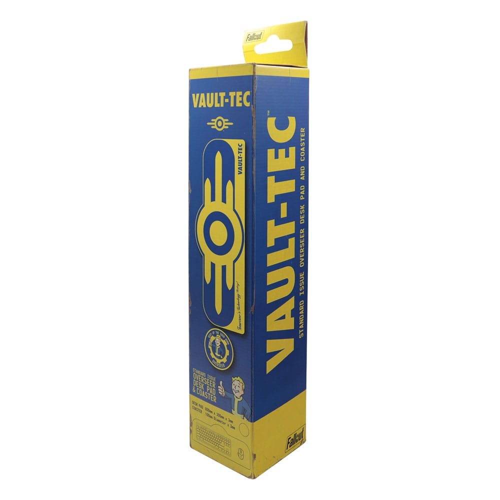 “Welcome to your Vault! This is your standard-issue Vault-Tec desk pad and coaster set, here to help you complete everyday tasks and as you transition into the vault.