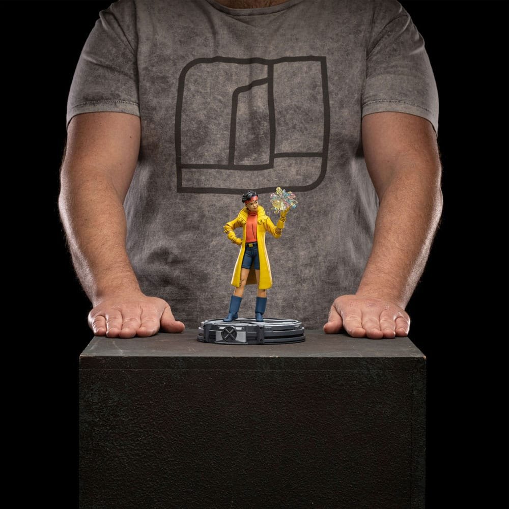 In a casual manner, the young Chinese American mutant playfully uses her powers, creating a subtle explosion in the shape of a colorful flower with her left hand, thanks to her ability to produce plasmoid energy, while blowing a bubble with her chewing gum. Cheerful, impulsive, playful, and sometimes even a bit naïve, her classic outfit featuring navy blue boots and shorts, a pink top and glasses, and her indispensable yellow trench coat with matching gloves remains almost a standard for her visual identity. One of the most sought-after figures by fans and collectors, featuring innovations in its painting with a specific cel shading that makes all the figures in this new collection appear as if they are stepping out of the TV screen into the real world, Iron Studios presents the “Jubilee – X-Men ’97 – Art Scale 1/10” statue, set on a thematic base in the shape of the X logo of the mutant superhero team, and featuring an extra head without the bubblegum bubble, inspired by the highly successful animated series available on Disney+ streaming service.