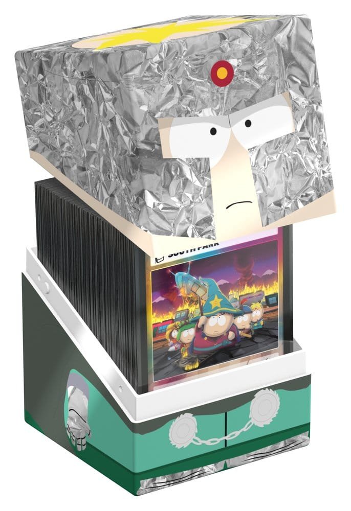 Collectible box for storing TCG decks, tabletop gaming accessories, and/or collectibles. The Professor Chaos Squaroe from the South Park™ edition holds up to 100 cards in double protective sleeves if used as a deck box. Squaroes are made from 78% renewable resources and fit perfectly into the separately available Collectors Case.