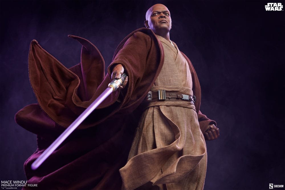 Figurka Mace Windu o wysokości 53 cm zachwyca swoim wykonaniem. Połączenie polistyrenowych elementów oraz tkanin tworzy realistyczny efekt, który przenosi fanów do świata Star Wars. Jego charakterystyczna ciemna szata z tkaniny, wraz z odpowiednio ułożonymi tunikami, nadaje figurce wyjątkowej głębi.