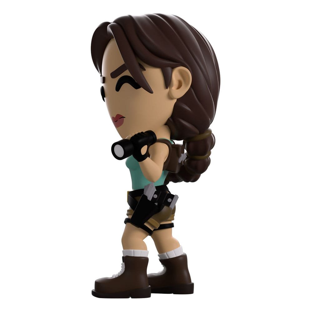 Lara Croft has followed the maps and investigated the clues to track down the treasure hidden at Youtooz! Little does she know, it’s her debut! Standing at 4.3 inches tall with a pistol held up in her right gloved hand as she shines a flashlight outward with the left, the pink lips of her serious face are pursed together as long brown hair is pulled into a ponytail that wraps around her back. Wearing her iconic green tank top and khaki shorts, a second pistol sits in the holster wrapped around her waist as white socks poke out from the top of her thick brown boots. The exterior of her packaging sees her illuminating an ancient tomb with her flashlight, while the interior is covered in a textured pale green. The protective sleeve is then designed to look like a tomb’s wall as her figure can be seen through the large clear window at the packaging’s front. This collectible ships in a matte, embossed, protective outer sleeve and a custom-sized plastic protector for maximum protection during shipping.