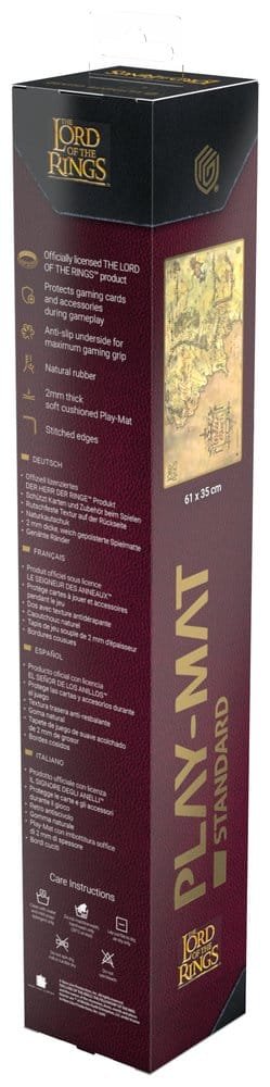 The 61x35cm Play-Mat from Ultimate Guard’s official The Lord of the Rings™ edition “Places of Middle-earth” protects cards and sleeves while playing and improves the gaming experience thanks to its anti-slip underside, while the stitched edges guarantee an even longer service life.